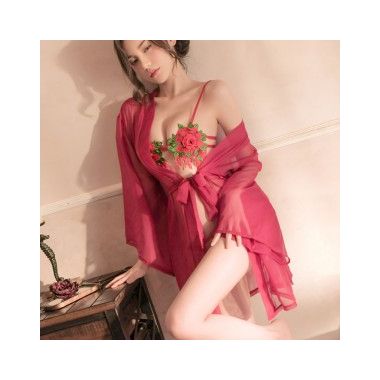 【情趣内衣】玫瑰刺绣三点式睡袍套装 佐卡莲/ZOCOA