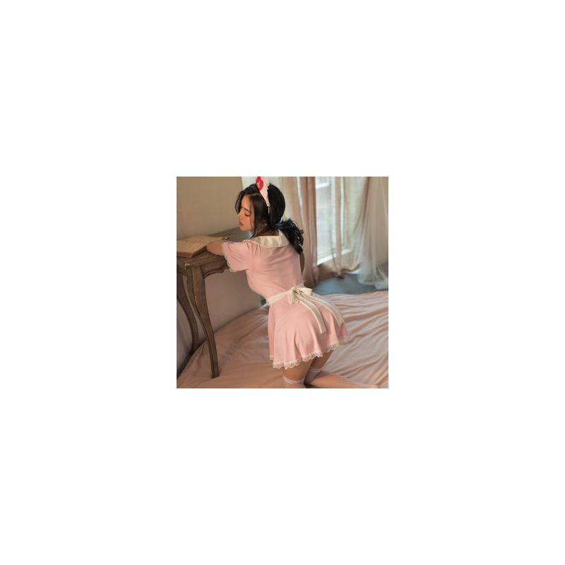 包含:发箍+露沟连衣裙+绑带围裙+T裤(长筒网袜另选购)